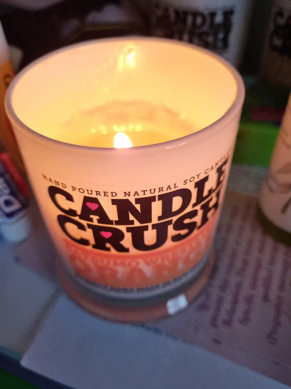CANDLE CRUSH products are all made using 100% natural soy wax. Soy wax is vegetable-based and is completely natural and sustainable - unlike paraffin wax which is derived from crude oil and isn't good for the environment or potentially your health. Insist on only burning natural soy wax candles!